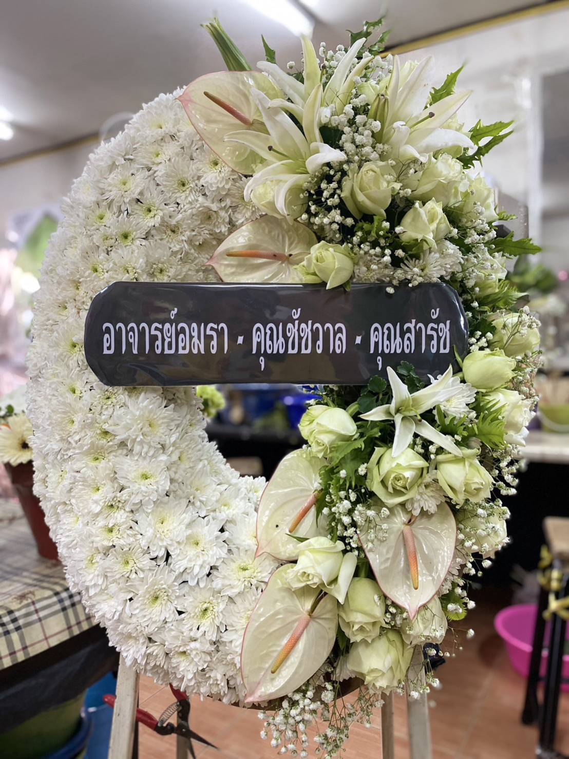 • ดอกไม้ที่ใช้จัด พวงหรีด นั้นขึ้นอยู่กับฤดูกาลและปริมาณในตลาด หากดอกไม้ชนิดนั้น ๆ หมด ทางเราขออนุญาตใช้ดอกไม้พันธ์ุอื่นในการจัด พวงหรีด โดยเราจะใช้ดอกไม้ที่มีโทนสีใกล้เคียงและสมราคาให้กับท่านมากที่สุด